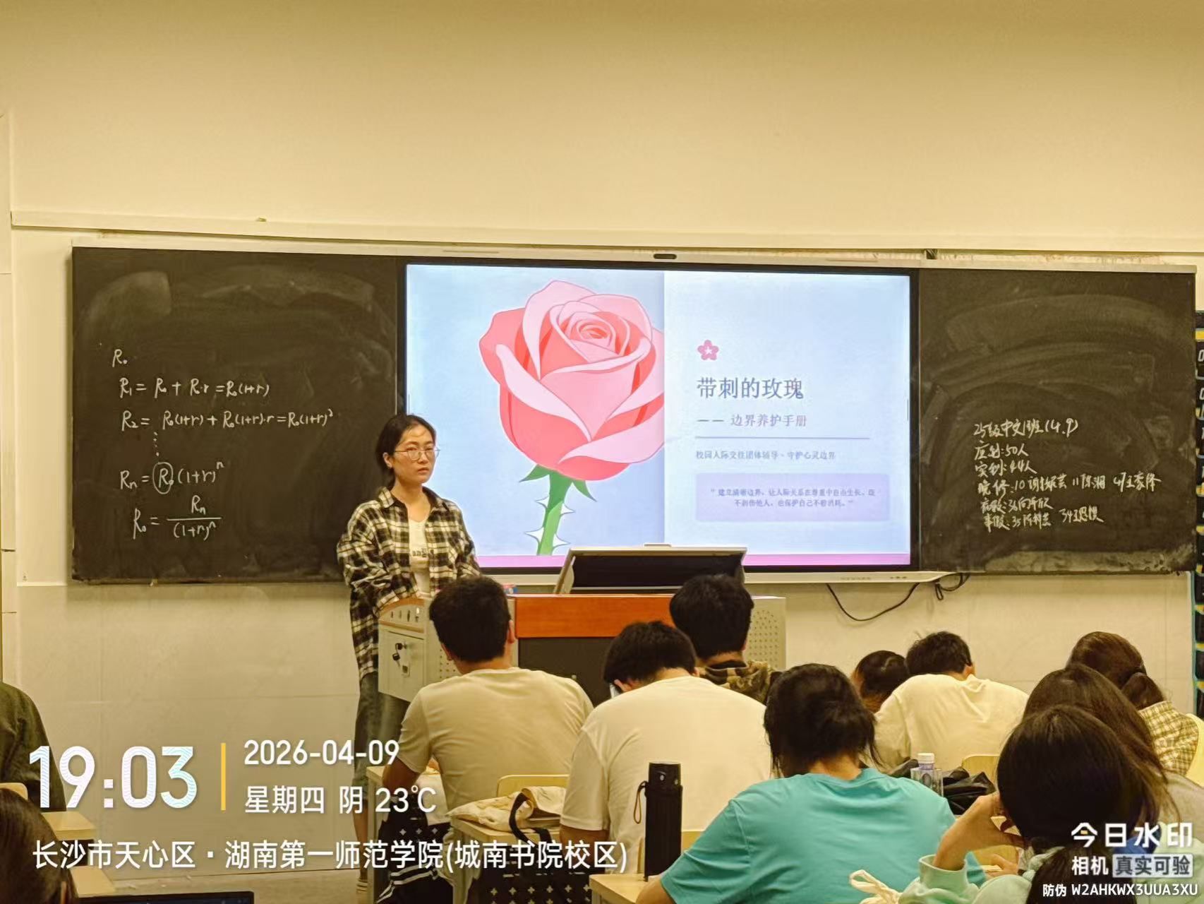 为帮助同学们树立健康的人际交往边界意识,学会在亲密与独立间找到平衡,2026年4月9日晚7点,我校开展了以“带刺的玫瑰 边界养护手册”为主题的人际交往团体辅导活动,通过沉浸式游戏与深度分享,为同学们打造了一堂生动的“边界感必修课”。本次团辅由心理中心肖啸老师指导,各班心委组织开展。
