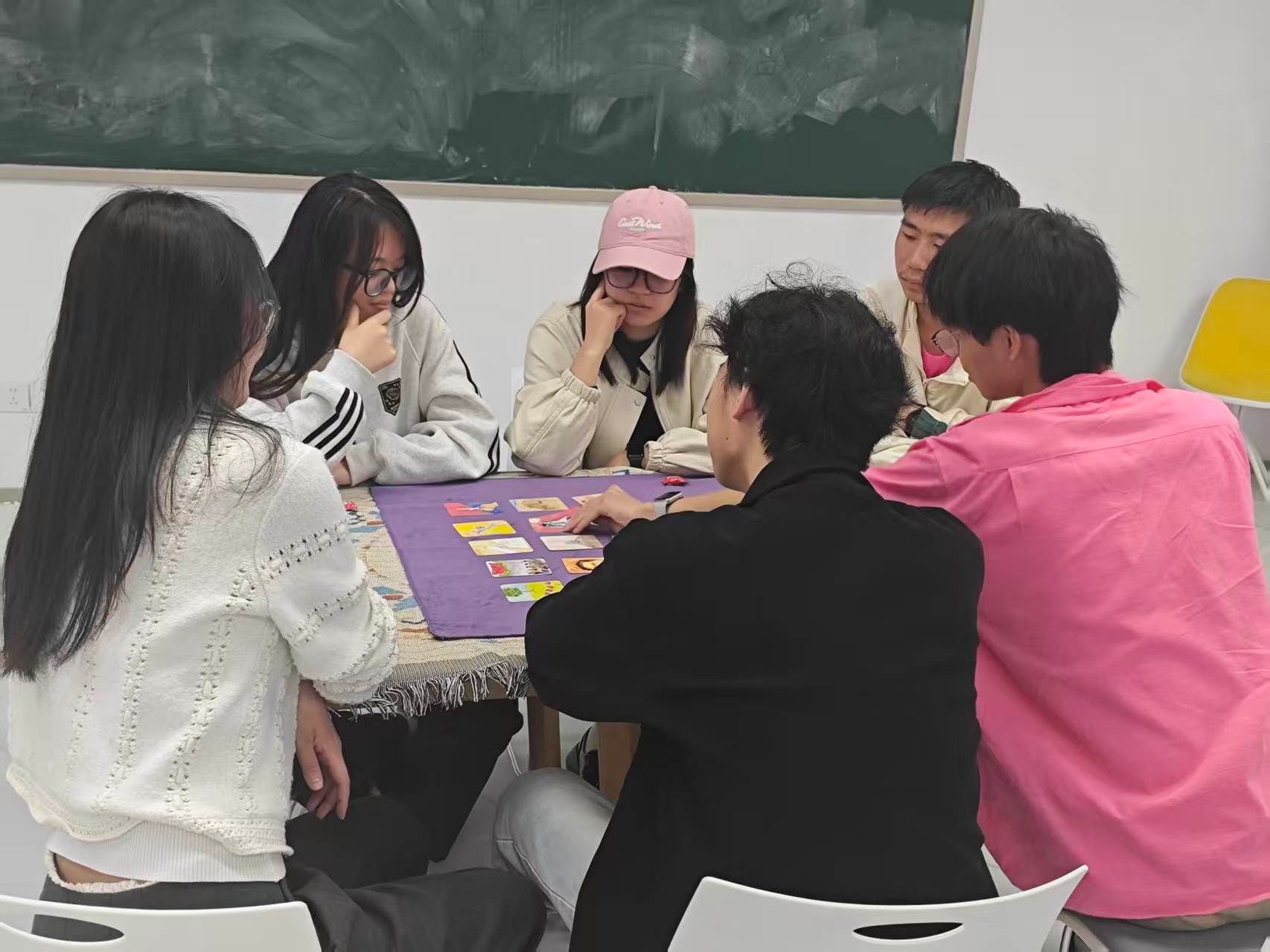 活动开场,同学们通过明选OH卡完成自我介绍,以童话人物作为团队专属代号,并参与趣味报数游戏,获胜者可获得糖果奖励,在轻松互动中快速拉近彼此距离,营造出开放、信任的团体氛围。随后,大家依次开展三轮OH卡故事接龙,结合卡牌意象联结自身当下状态,分享每张卡牌对自己的独特意义,在真诚讲述与倾听中打开内心、收获共鸣。