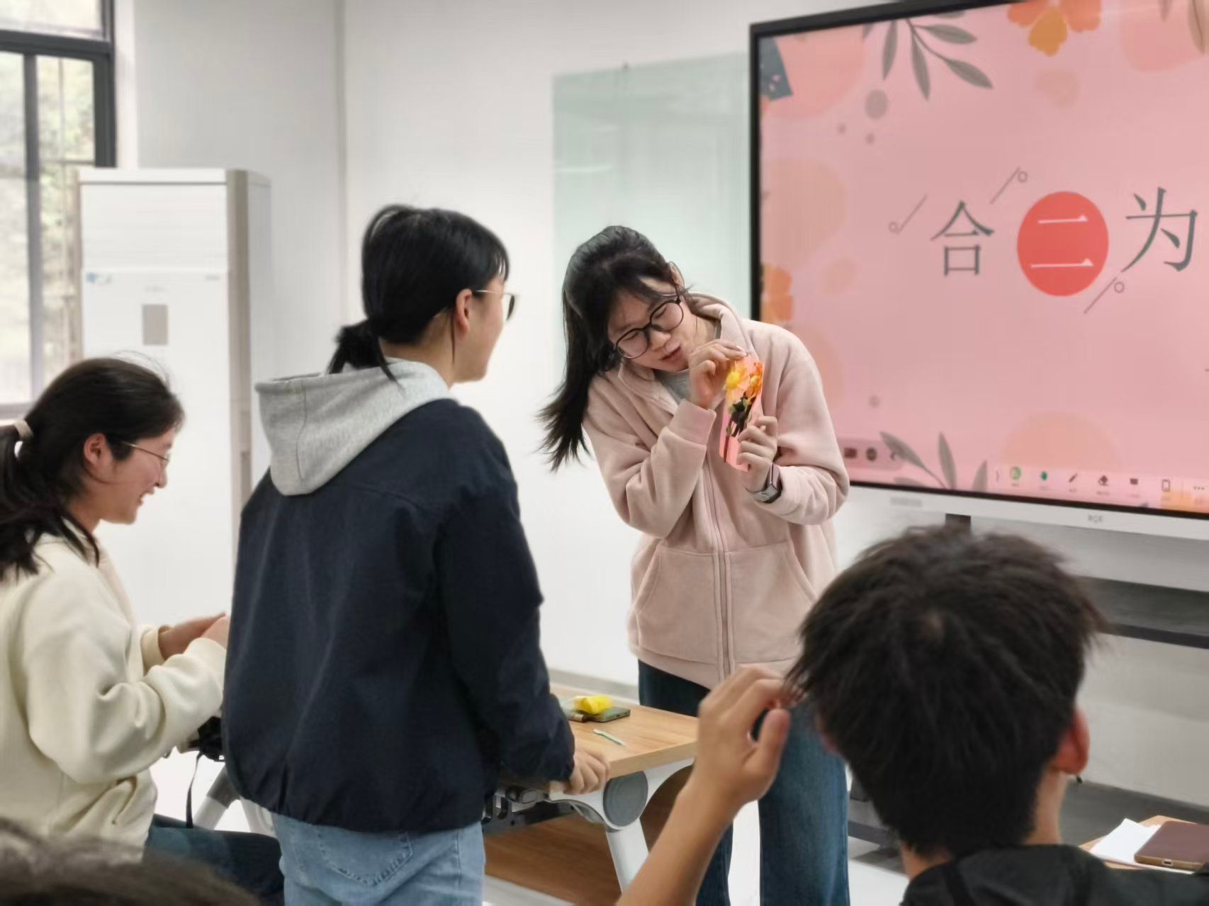 2026年4月12日下午两点,我校心理健康教育中心组织开展“生命的律动”系列团辅之“一分为二 合二为一”手工粘土团体辅导活动。本次活动由心理中心肖啸老师指导,中心团辅团队李冰慧和吴雨欣同学共同主持。