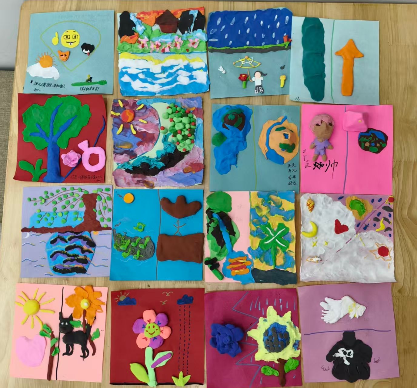 活动以轻松有趣的 “找朋友” 小游戏拉开序幕,同学们在彩纸上写下兴趣特长,主动寻找同伴,快速拉近彼此距离,营造温暖开放的团体氛围。在创作环节,大家将彩纸自主划分为两个区域,伴着轻柔音乐向内觉察,用粘土与画笔自由表达眼中的自己,无需完美,只忠于内心感受。随后进入双向看见环节,同学们交换卡纸,用真诚创作描绘同伴眼中的彼此,将欣赏与祝福融入作品。当卡纸回归,自我认知与他人视角相融,两个 “我” 合二为一,构成完整而独特的自我画像。