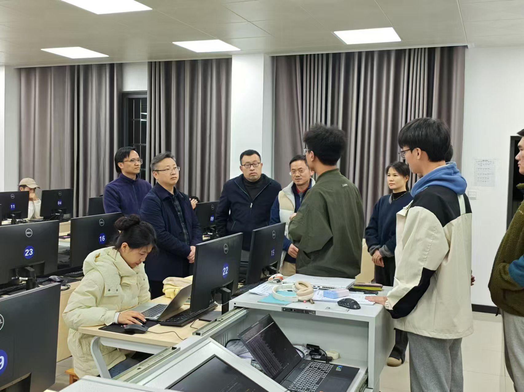 在玉衡楼302实验室,石校长一行观摩了由计算机学院举办的首届 “湘岚杯” CTF 网络安全大赛(个人赛),与参赛学生亲切交流,询问赛事筹备情况、有何困难,并提出学校会大力支持此类赛事,鼓励同学们发挥创新精神。随后,石校长一行巡查校园安全并查看了课堂情况。