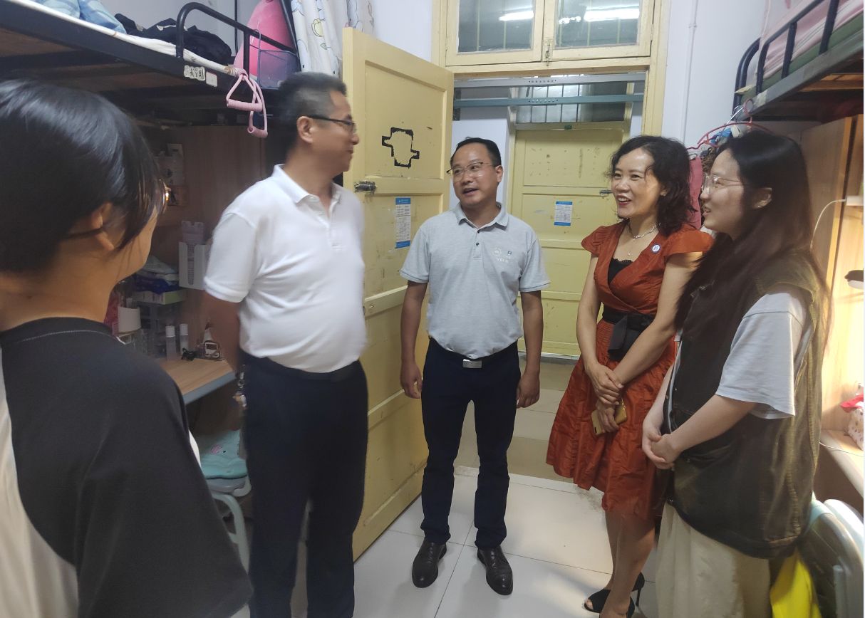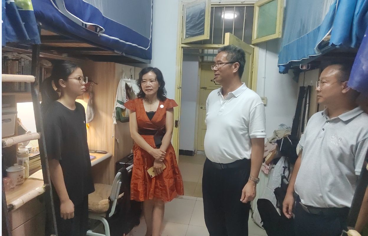 9月16日晚,校长喻祖国在学工处副部长付焱、数学与统计学院党委副书记申鸣凤、学工办副主任毕倩等陪同下,深入学思苑学生社区开展走访调研。一行人先后走进学生寝室和考研自习室,与同学们亲切交谈,详细了解大家的日常生活、学习状态及备考情况。