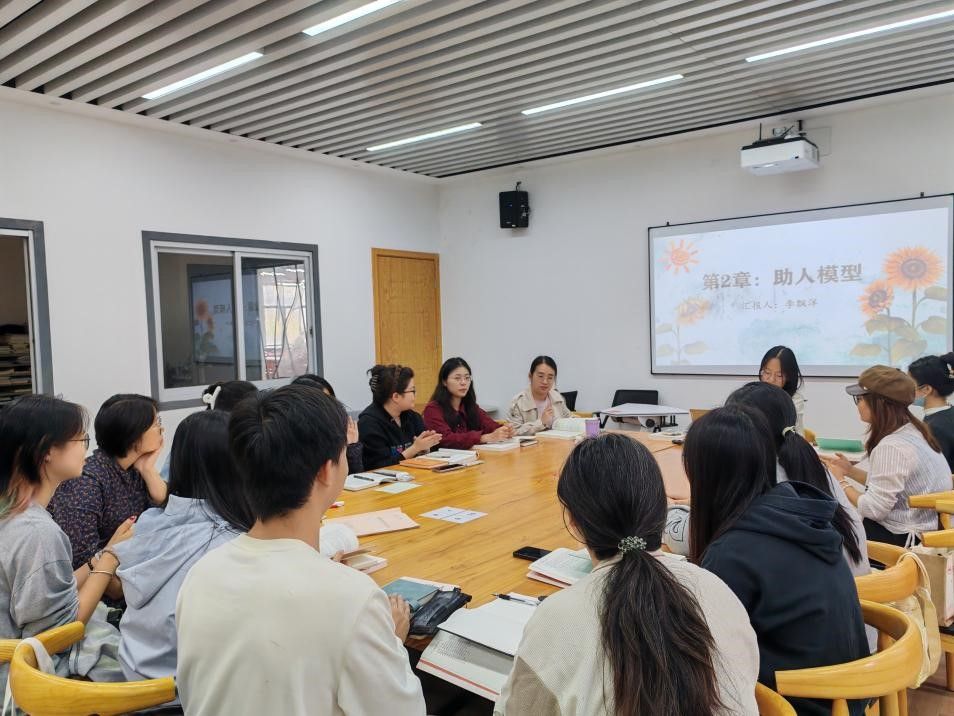 接着,两名朋辈咨询员围绕《助人技术:探索、领悟、行动三阶段模式》一书展开精彩的读书心得分享。他们以第二、三章的理论知识为基础,结合自身经验和咨询实践详细解读了助人过程模型和自我觉察两个主题内容。