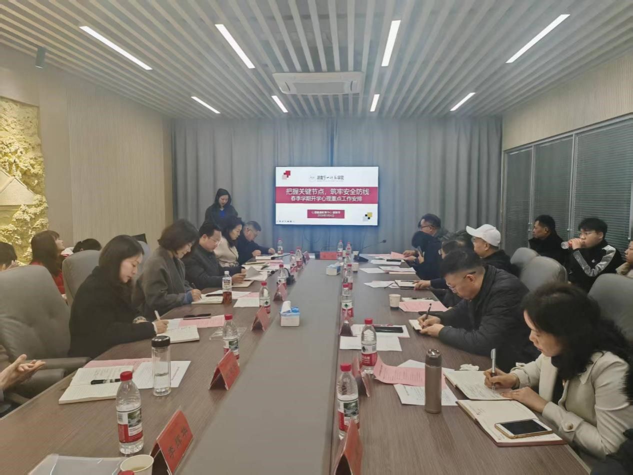 三是紧盯敏感期风险防范,筑牢生命底线。 针对开学过渡期与春季心理问题高发期叠加的严峻形势,会议要求迅速启动心理危机排查机制。各学院要重点关注寒假期间遭遇家庭变故、学业受挫及情绪异常的学生群体,做到早发现、早报告、早处置,织密心理防护网,筑牢生命安全底线。
