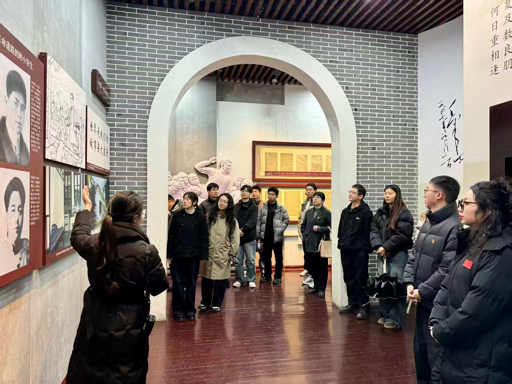 春日的纪念馆生机勃发,红色气息浸润人心。在工作人员的引导和讲解下,辅导员们沿着习近平总书记两年前考察我校时的足迹,参观青年毛泽东主题展览。一幅幅珍贵的历史图片、一件件朴实的实物展品、一段段翔实的文字记录,生动再现了学校悠久的办学历史和深厚的红色基因。大家驻足观看,认真聆听讲解,并不时交流讨论,深刻感悟习近平总书记对教育事业的高度重视、对青年学子的深情关怀以及对学校发展的殷切期望。在纪念馆前厅,全体人员重温习近平总书记考察我校重要讲话精神,再次深刻领会讲话的深邃内涵与核心要义。