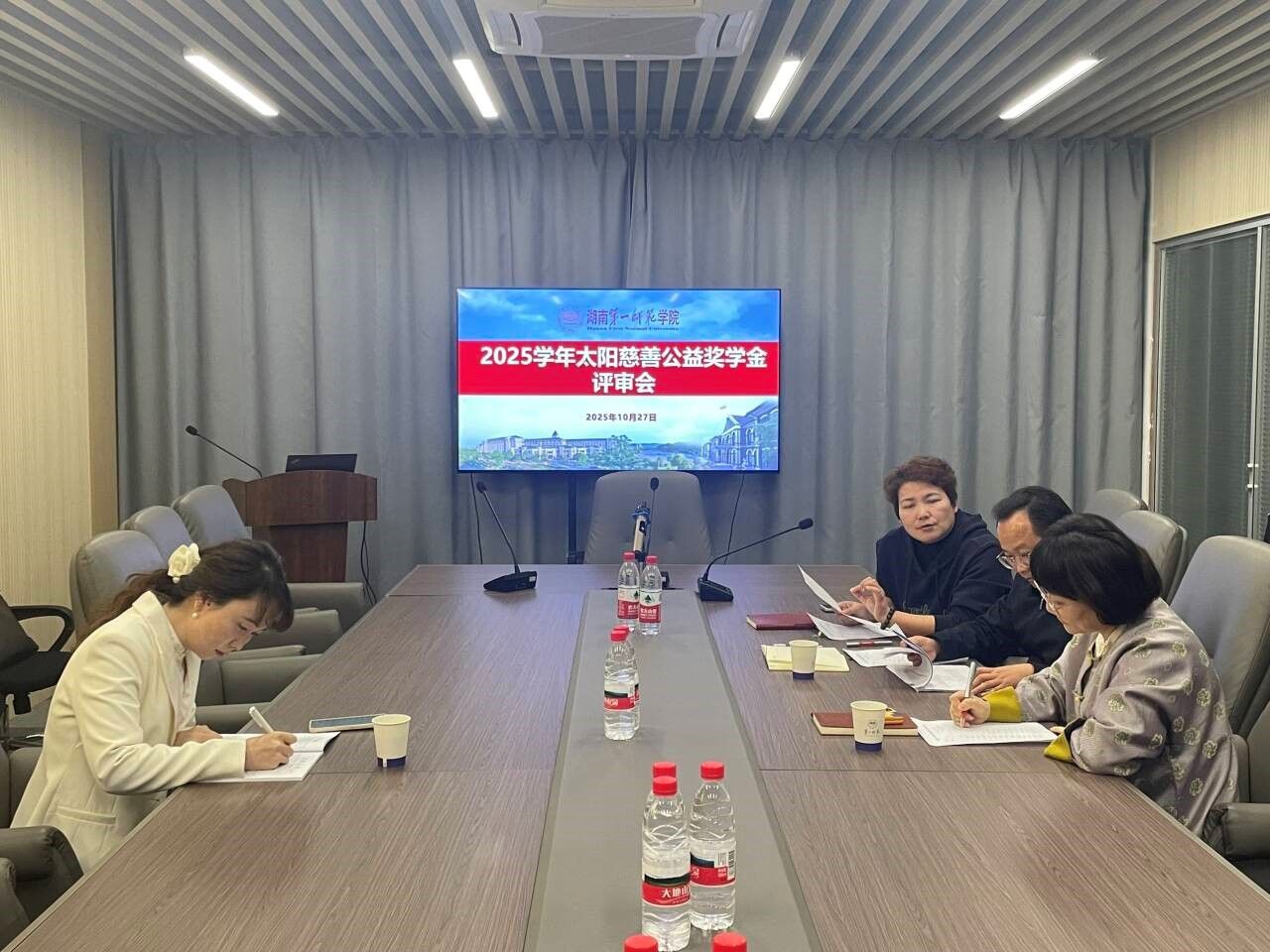 10 月 27 日,太阳慈善公益奖学金评审会在葵园楼207会议室召开。学生工作部、校友基金会、招生就业处相关负责人参会,并以 “公平、公正、公开” 原则完成评审,助力品学兼优学子成长。